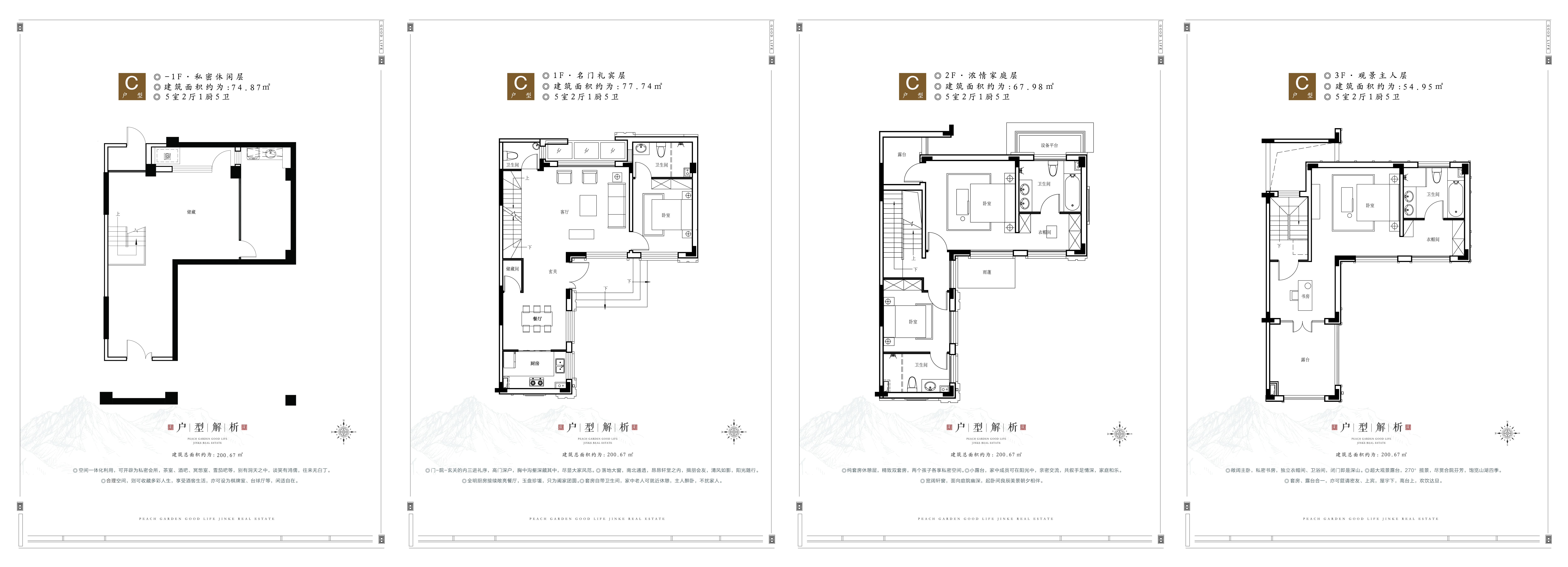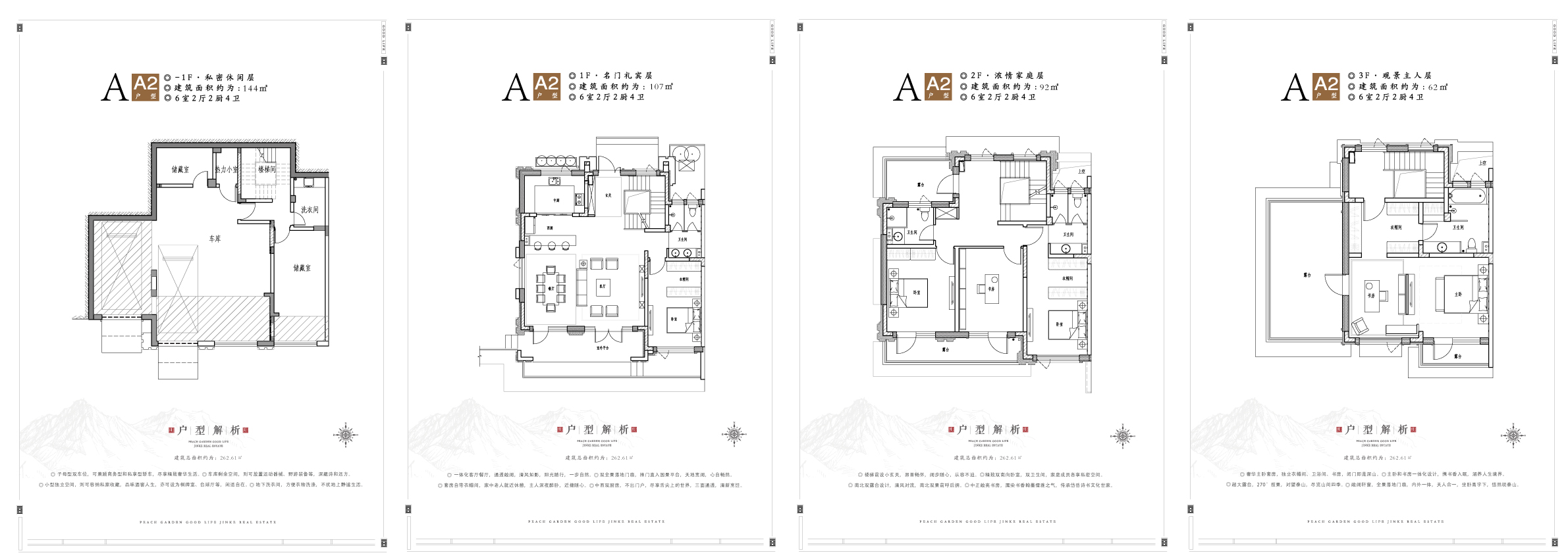 项目总占地416亩,总建筑面积约17万平方米,总户数865户,容积率仅0.6,是泰山脚下规模最大、产品类型最全、自然环境最为优美的低密社区。项目分三期开发建设,其中南侧A4地块为项目的一、二期工程,户型90-220平米,产品类型涵盖叠院、叠拼、联排、双拼,目前437套房源已全部售罄。北侧A3地块为项目的三期新品,占地250亩,容积率仅0.6,绿地率高达50%,建筑密度仅24.9%,总户数仅428户,相当于户均活动面积超半亩地。三期毗邻景观大道环山路,地势更高,视线更好,同时毗邻石腊湖水系,可谓占据了社区最好的位置。 整个A3地块规划住宅162栋,由合院、小双拼和大双拼组成。合院产品分布在项目北侧和南侧,计价面积200平左右,全部赠送地下室和地下车位,经由地下车位直达地下室,归家更舒适。石腊湖沿线及社区地势最高处规划为环湖大双拼及山景大双拼,面积约265平米,产品开间超过10米,为社区楼王位置。其余部分则由225平米左右小双拼组成,部分产品赠送地下室及地下车库。整个三期产品规划依地势而建,利用天然的地势高差、湖景资源,结合地形、地势、产品特征打造出地下室、半地下室、地下车位、车库等,大大提升了产品的附加值。 景观打造方面,因项目背山临水,且项目自身为高低错落的山地别墅,设计师取山、水元素、以石腊湖的水和泰山为灵感进行设计,将水文化主题植入主轴院落空间,再结合山体台地打造景观化高差,形成层层递进的空间序列,通过门、庭、园、巷、院五层属性空间,构建出各具特色的山水场景,做到移步易景。项目毗邻桃花峪景区,周边负氧离子为市区的百倍,入住桃花峪就如同入住半山森林度假别墅。 配套方面三期规划了2500平米公建配套和近1000平米的商业配套,方便业主日常生活。除了社区内部生活配套外项目南侧迎宾社区将在明年进行交付,周边已经规划有学校等配套设施,未来还会依情况配备医疗、商业配套,周边配套将逐渐完善,可以说桃花源是未来内外部配套最完善的纯别墅设区。 三期建成后,整个社区将成为416亩的超大园区,业主可以春赏花、夏戏水、秋赏枫叶冬赏雪,周末闲暇时也可约三五好友一起去彩石溪踏青或是在最美景观大道环山路来一场健康慢跑,结束后回到自己的私家庭院来场室外BBQ,食材可以全部采用庭院内种植的有机蔬菜,即健康又美味同时还彰显了主人的身份地位。